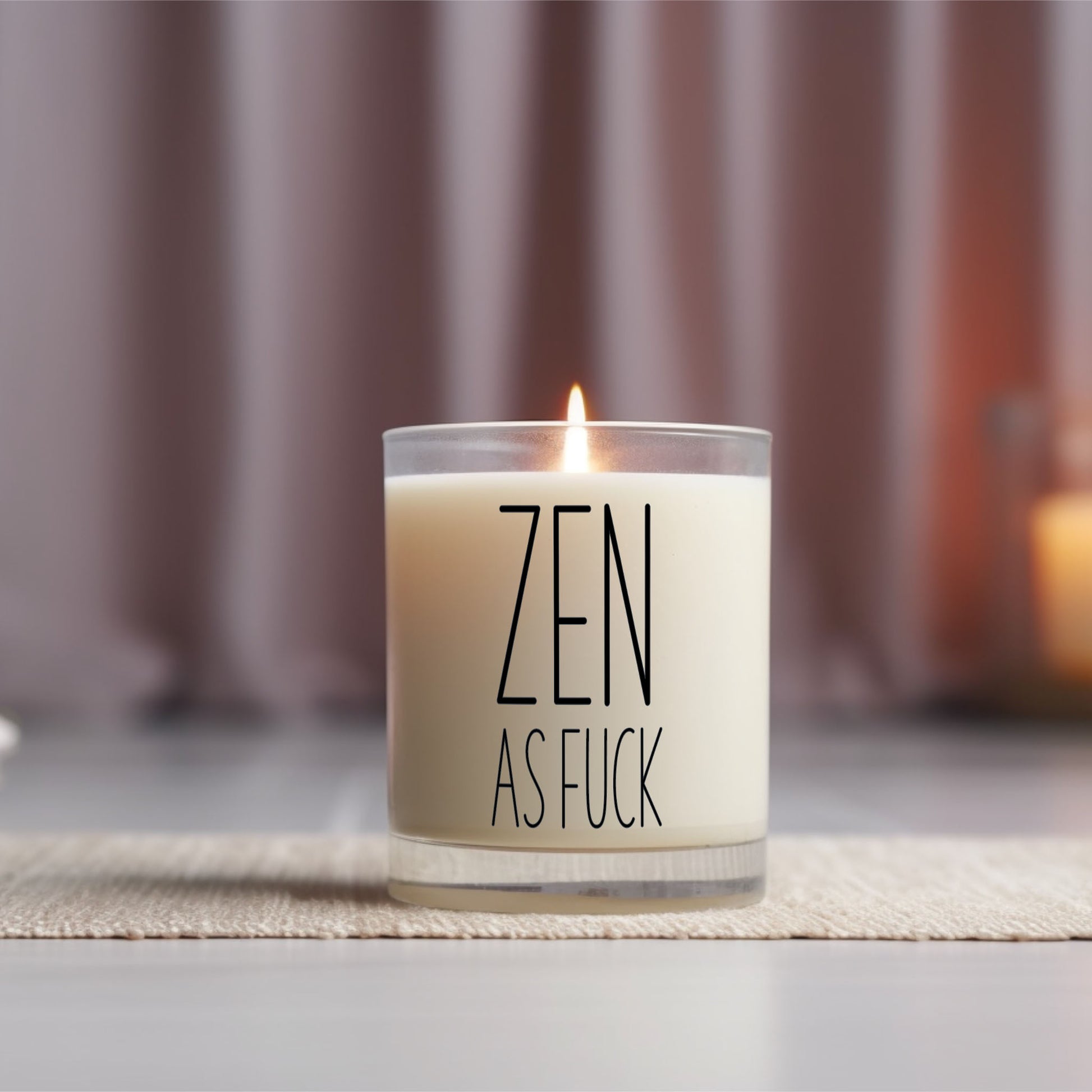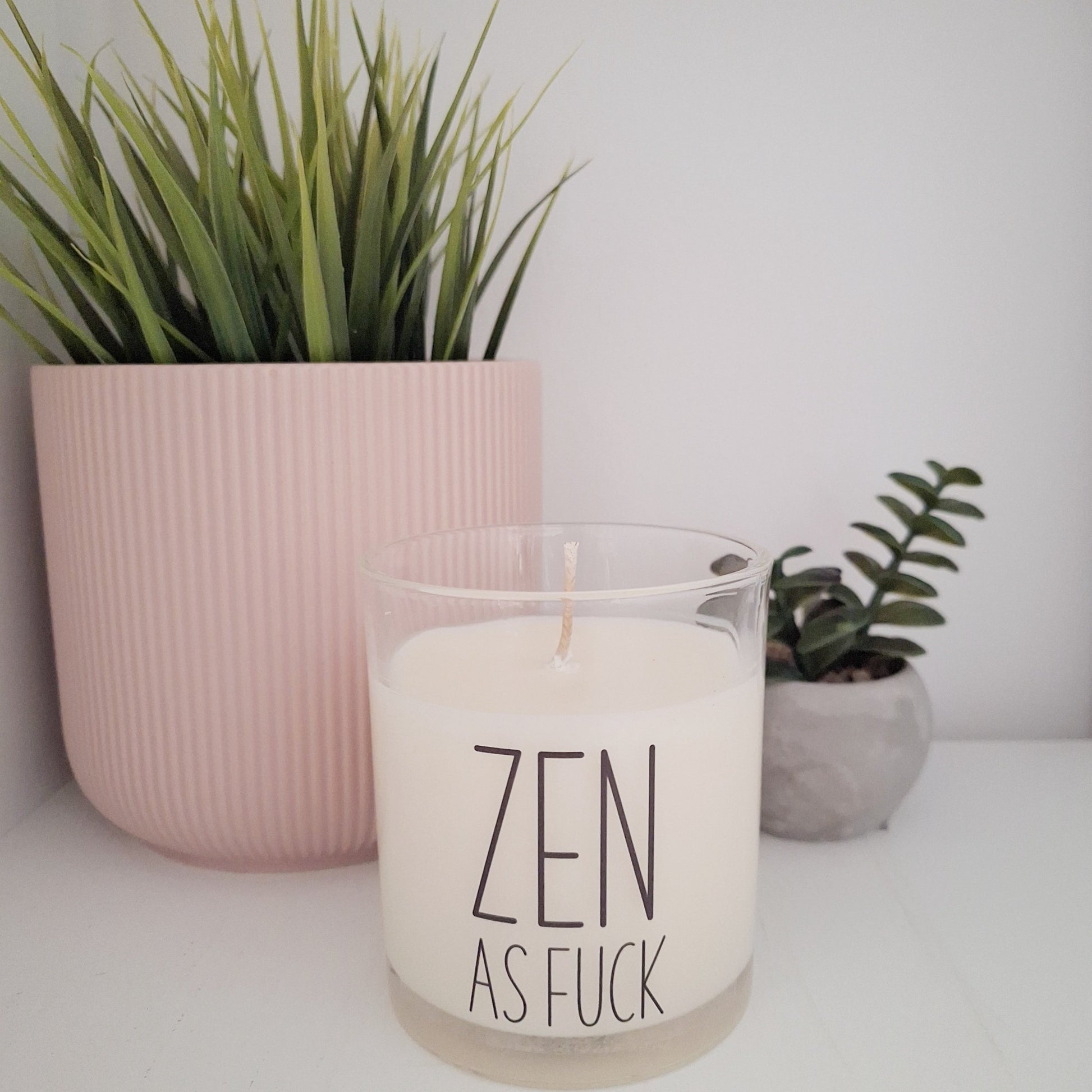 Κερί σε γυάλινο ποτήρι με quote ZEN as fuck