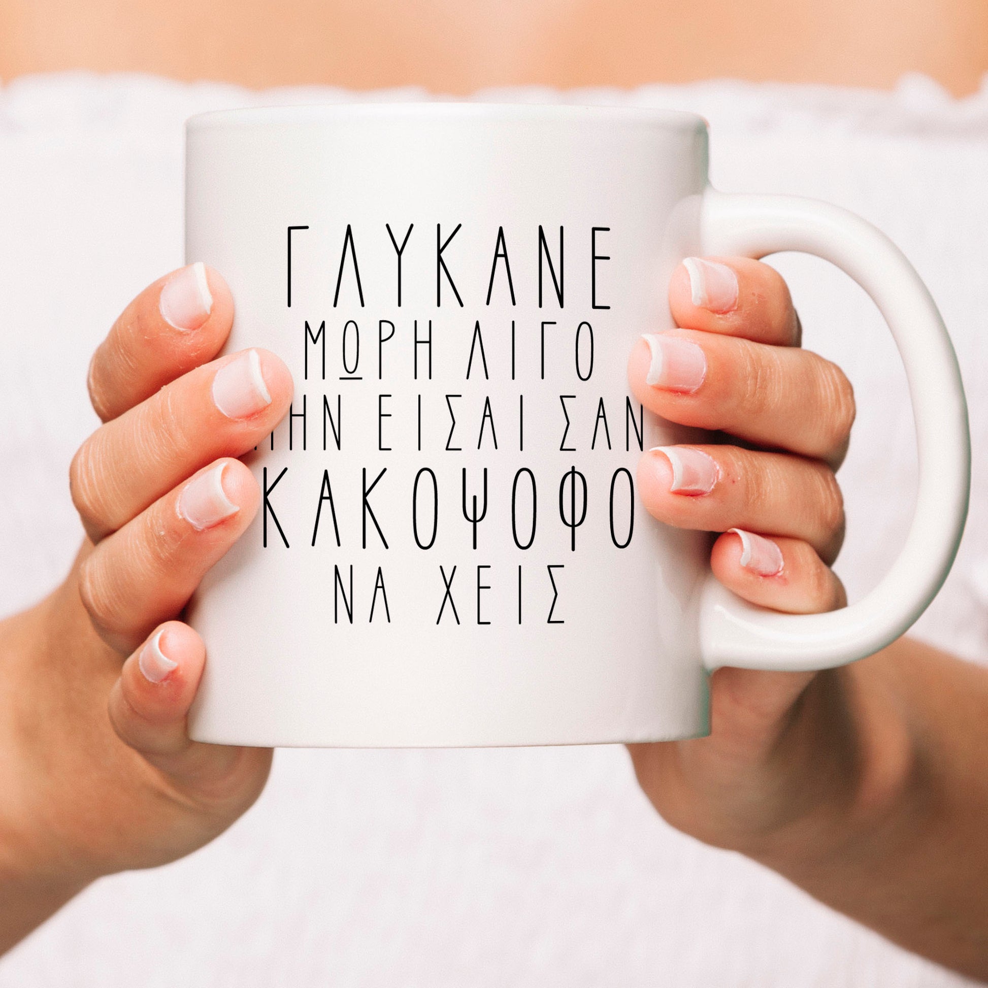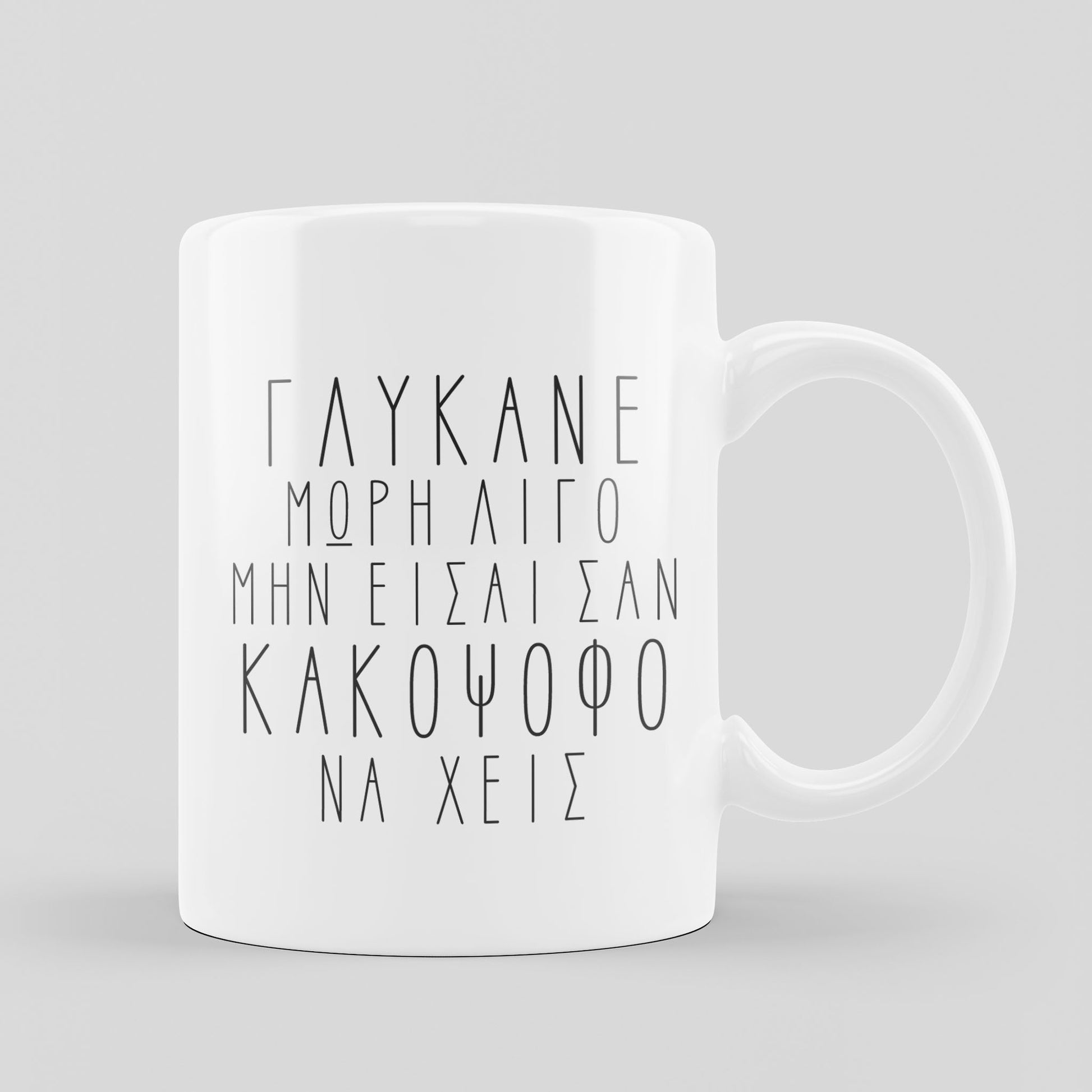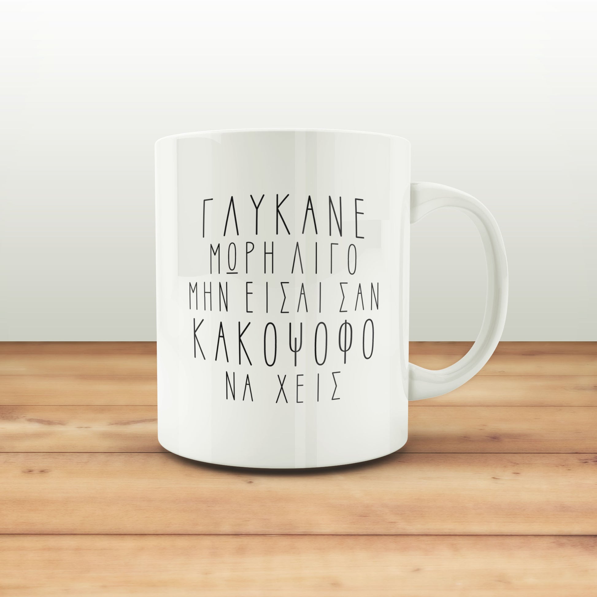 Λευκή κούπα από πορσελάνη με εκτύπωση.