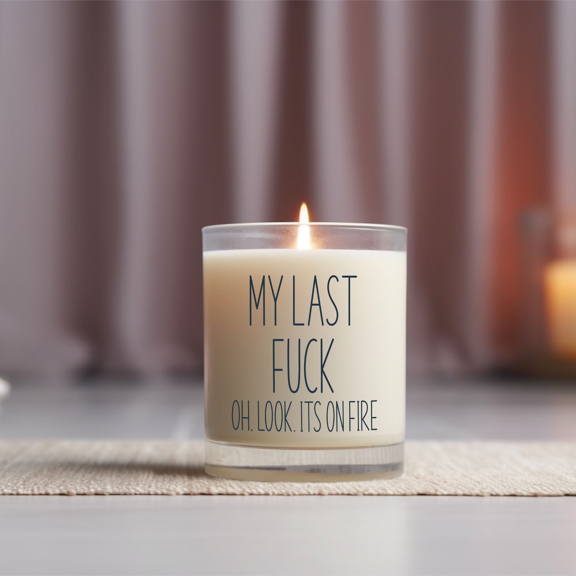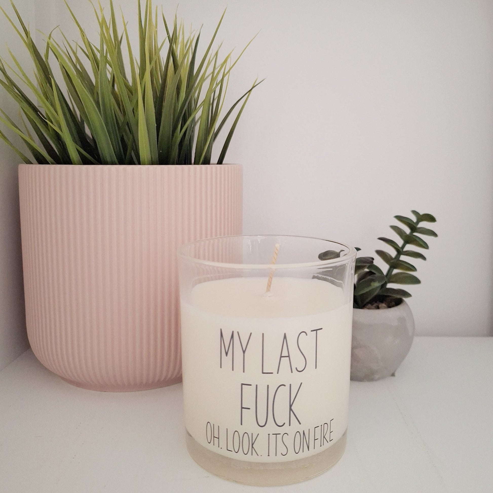Κερί σε γυάλινο ποτήρι με quote My last fuck. Oh, look its on fire
